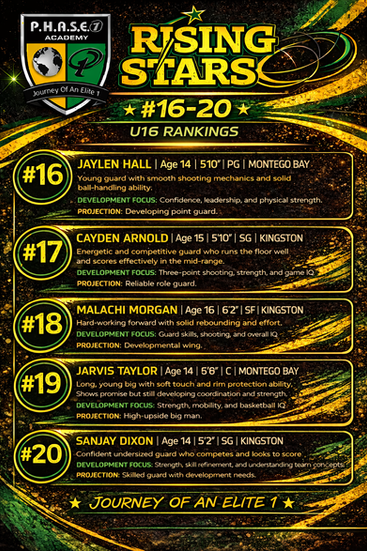 P.H.A.S.E. 1 Academy Jamaica2026 U16 Rising Stars Easter Ranking Camp